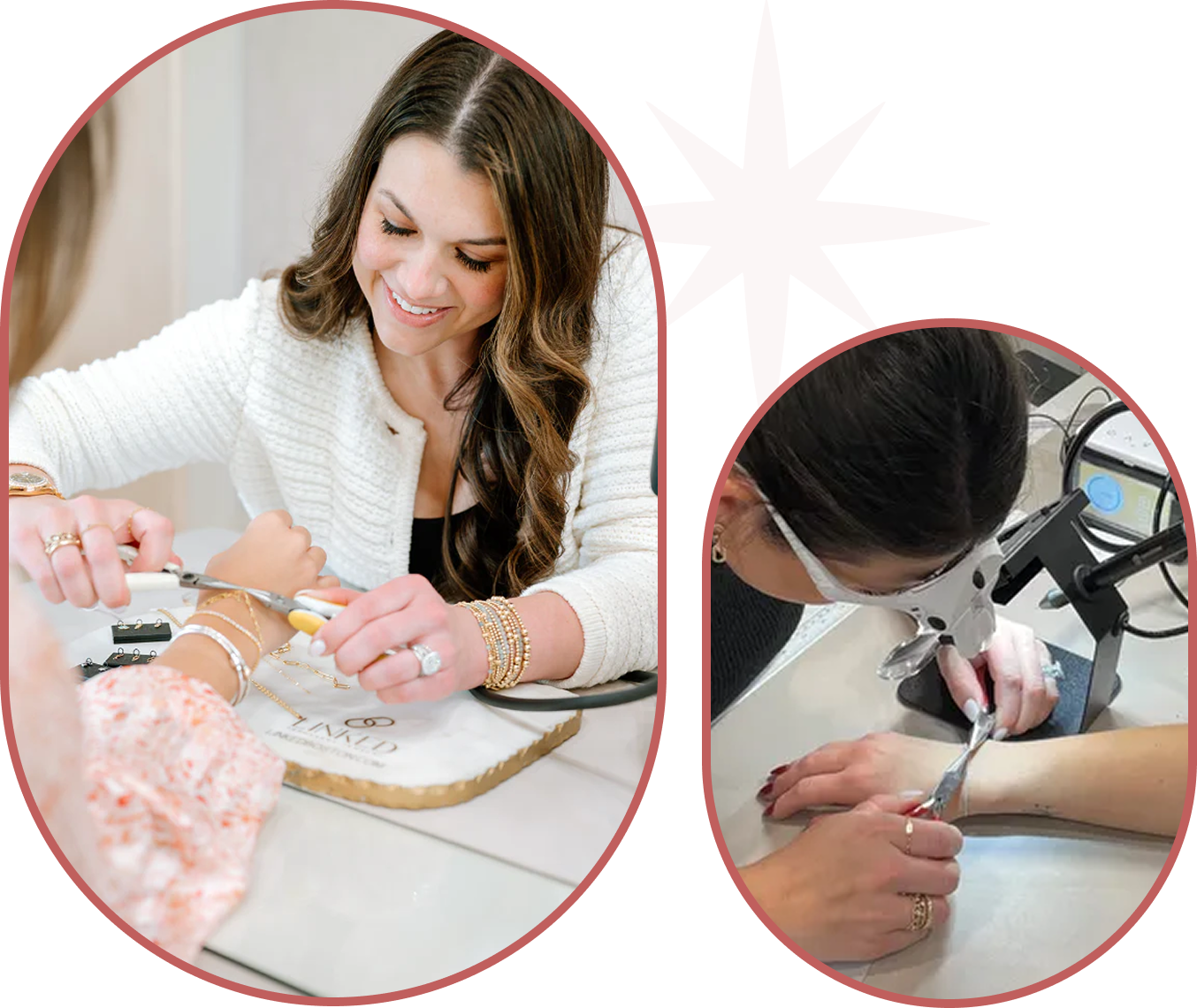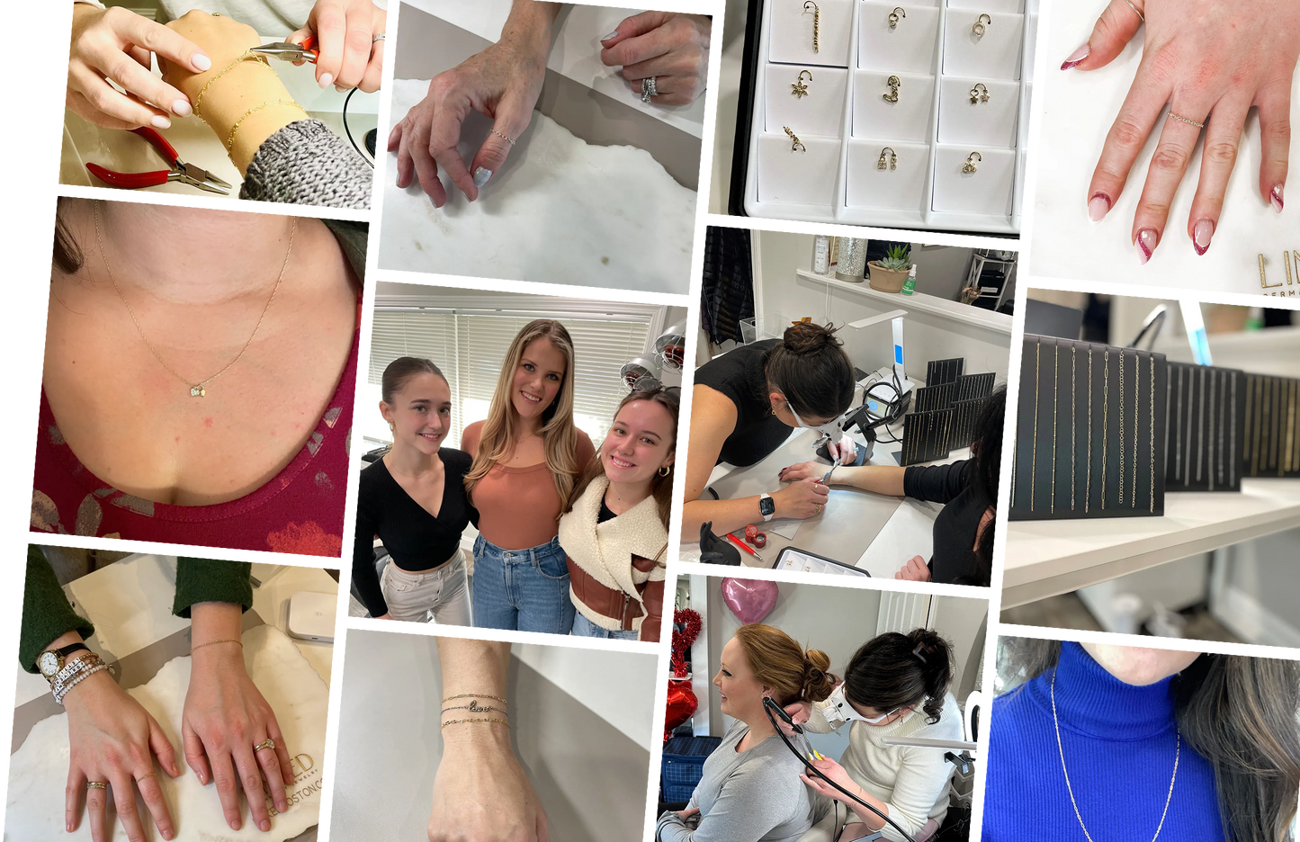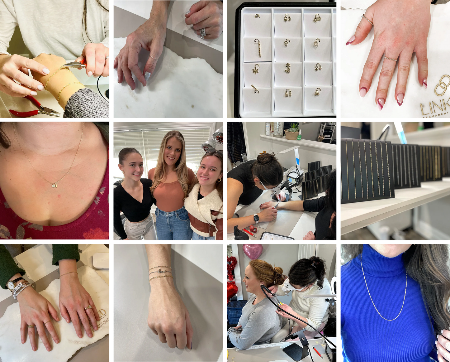 Explore our Permanent Jewelry Gallery to see each piece styles, stacked, and worn in real life. From delicate everyday chains to meaningful links shared with loved ones, discover how permanent jewelry becomes a part of your story. Get inspired by real moments, real connections, and effortlessly beautiful wear.